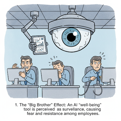 L’exemple concret (L’outil de “bien-être” perçu comme “flicage”) : Une entreprise déploie un outil IA (comme l’analyse de données anonymisées type Microsoft Viva) pour analyser les tendances de charge de travail et “prévenir le burnout”. L’intention est louable.